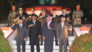 Kapolres Pringsewu Bersama Forkopimda Ikuti Apel Kebesaran dan Renungan Suci HUT RI Ke-77
