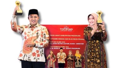 Momen Membanggakan: Bupati Pasuruan H. M. Rusdi Sutejo bersama Direktur RSUD Grati drg. Dyah Retno Lestari, M.Kes saat Menerima Penghargaan…
